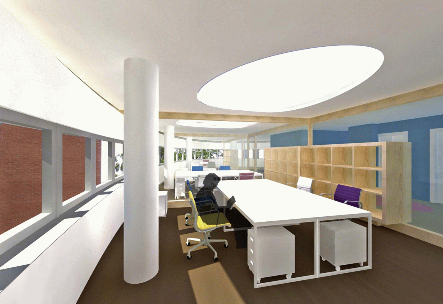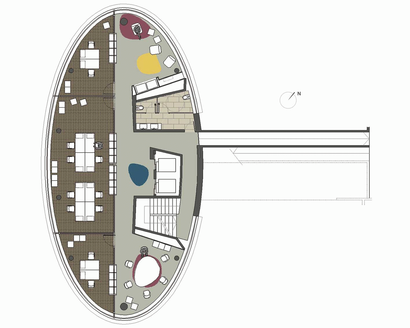 El proyecto se sitúa en la Villa Olímpica del Poblenou, en Barcelona. El edificio escogido es la antigua central de Telefónica, una construcción de los arquitectos Jaume Bach y Gabriel Mora finalizada en el año 1992 con motivo de los Juegos Olímpicos de Barcelona. El edificio en el que se hará la intervención tiene una planta elíptica y consta de cinco pisos. En la planta baja está la recepción, las plantas primera, segunda y tercera son los espacios de trabajo, y la cuarta planta es un restaurante comedor.